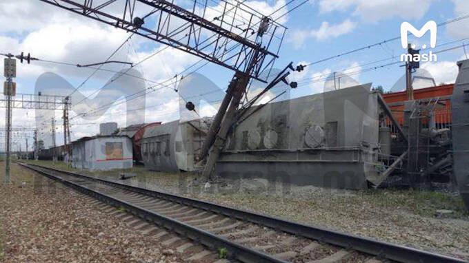 По нашей информации, три из них, которые везли цемент, перевернулись на бок. Всего в составе был 31 вагон.