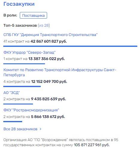 Всего же у "Возрождения" контрактов на 105 млрд рублей.