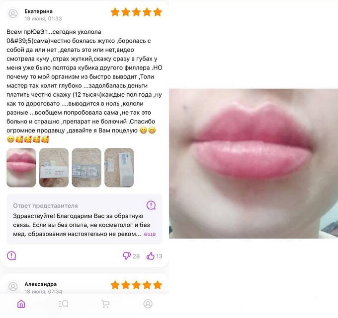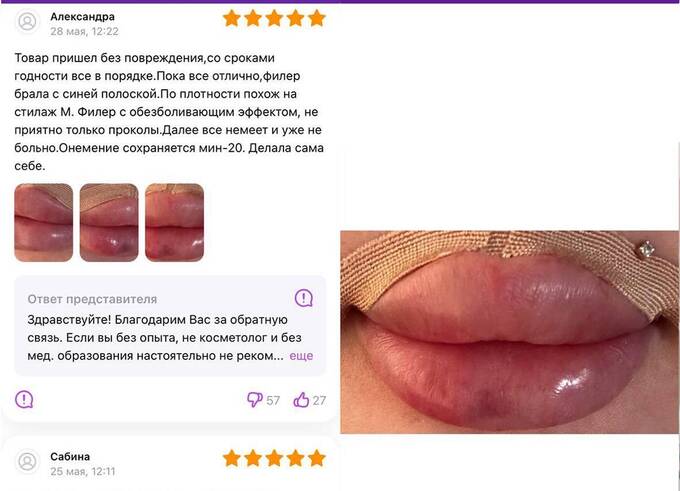 О домашних операциях девушки подробно рассказывают прямо в отзывах на «Вайлдберриз» и «Озоне». Там же они делятся и волнующими вопросами об инъекциях — продавцы же в ответ дают настоятельные рекомендации и напоминают о санитарных правилах.