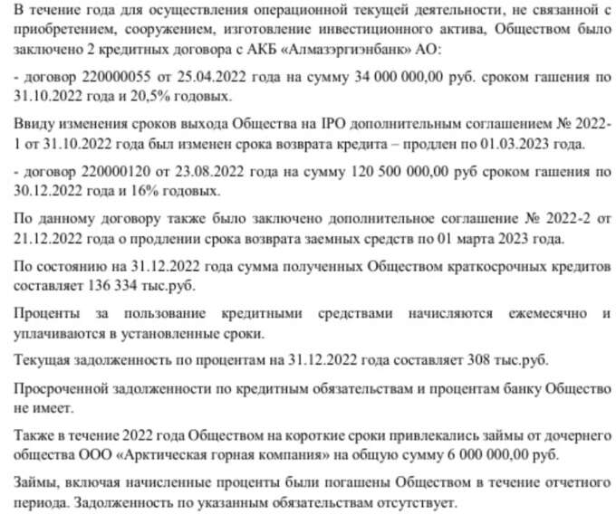 При этом, что интересно, стоимость активов ПАО, определённая по данным бухгалтерской (финансовой) отчётности эмитента на последнюю отчётную дату, предшествующую дате совершения сделки, составляет всего 334 099 000 рублей (на 31 марта 2023 года). Сама же сделка была совершена 20 июня 2023 года. Тут важно отметить, что "Алмазэргиэнбанк" не в первый раз кредитует на существенные суммы эту компанию. Например, в августе 2022 года банк уже открывал фирме кредитую линию на сумму 120,5 млн рублей, при этом стоимость активов ПАО на тот момент составляла 191,336 млн рублей.