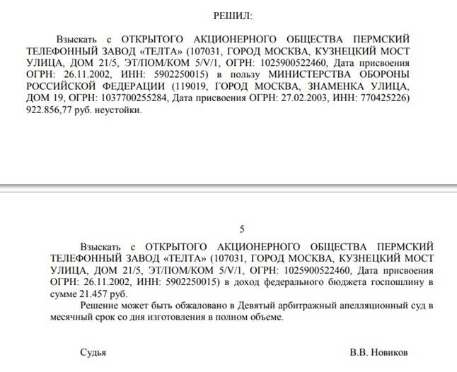 За последнее время военное ведомство неоднократно судилось с "Телтой" за срывы сроков поставок средств связи. За последний год в адрес предприятия поступило пять исков от ведомства. При этом один из судов власти проиграли: речь там шла о затянувшейся в 2021 году поставке более 1 тыс. единиц продукции почти за 70 млн рублей - часть госконтракта, который действует до конца 2023 года.