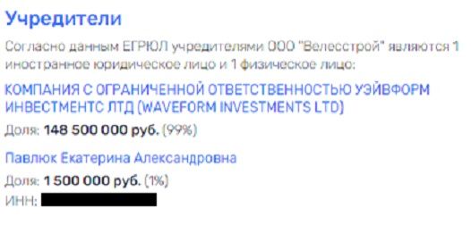 Формально компания на 99% принадлежит офшору Уэйформ Инвестментс ЛТД", еще на 1% - Екатерине Павлюк. Однако структуру давно связывают с другим чловеком, которого и называют конечным бенефициаром. Это предприниматель из Хорватии Крешимир Филипович, который одновременно является вице-президентом "Велесстроя".