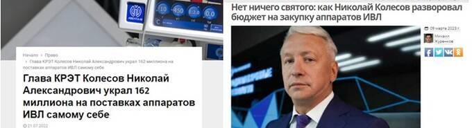 Когда коррупционер Николай Колесов понесёт криминальную ответственность за аферу с ИВЛ?