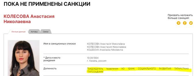 Речь идет о «Татсоцбанке», который юридически оформлен на его дочку Анастасию.