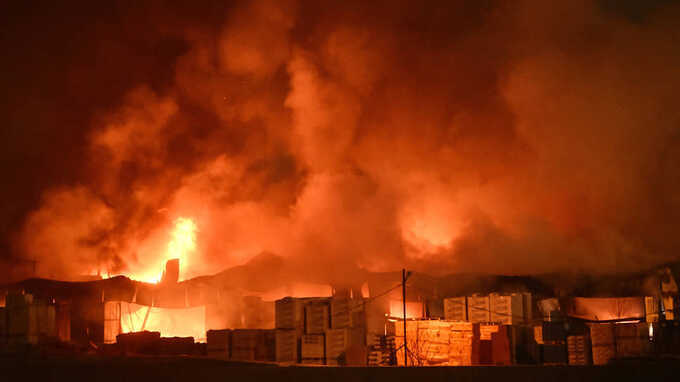 В селе Павловская Слобода загорелся строительный рынок, площадь пожара — 675 квадратов.