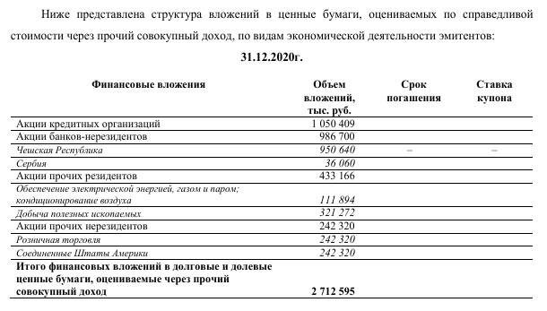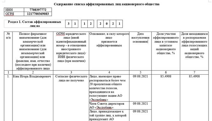 Еще один интересный нюанс вытекает из отчётности банка за 2020 год (тогда он ещё был ООО). В структуре вложений в ценные бумаги фигурировали и иностранные инвестиции, в том числе в Чехии, Сербии и США. В 2021 году издание "Спутник. Латвия" сообщало, что у Кима якобы есть мажоритарные пакеты в сербском Expobank JSC (72,2%) и чешском Expobank CZ (61,3%). То есть, вероятно, те самые инвестиции в Чехии и Сербии. Кстати, скромная долька (2,02%, оценивалась на 65 млн рублей) главы правления Кирилла Нифонтова в ООО "Экспобанк" в своё время была заложена как раз таки в чешском EXPOBANK CZ.