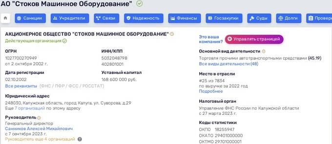 А теперь внимательно следите за руками. АО "Экспобанк", где на 2021 год у Кима было 85,49% акций, является контролирующим владельцем микрофинансовой компании "Кэшдрайв". К слову, в число соучредителей последней в 2020-2021 годы входил и Санников, что стал руководителем АО "Стоков Машинное Оборудование" и ООО "Стоков Конструкция".