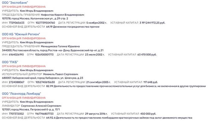 Кима не зря называют "серийным банкиром" - в его послужном списке мелькало достаточно много банков, часть из которых уже прекратила своё существование как юрлица.