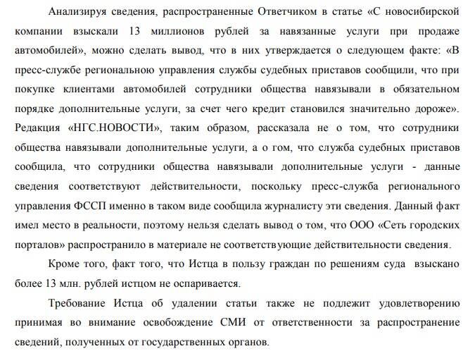 При этом компания "Автоэкспресс" успела побывать фигурантом скандально-судебной истории. В 2022 году в издании "Новосибирск.Онлайн" вышла статья под названием "С новосибирской компании взыскали 13 миллионов рублей за навязанные услуги при продаже автомобилей", в которой в числе прочего говорилось, что с начала 2022 года приставы возбудили 101 исполнительное производство на ООО "Автоэкспресс" и в итоге приставы взыскали 13 миллионов рублей с ООО в пользу потребителей за навязанные сертификаты, от которых люди потом отказывались в судебном порядке. Компания в суде требовала удалить статью, признав сведения несоответствующим действительности и порочащими деловую репутацию, но суд отказал ей в этом. 11 сентября 2023 года "Автоэкспресс" проиграл спор и во второй инстанции.