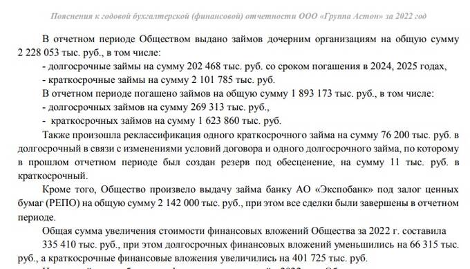 Ряд других активов Кима, засветившихся рядом со сделкой по Volvo, также не могут похвастаться показателями. Так ООО "Группа "Астон" за 2022 год демонстрировало падение прибыли на 87%, до скромных 1,2 млн рублей. Выручка фирмы составила также довольно скромные 39,144 млн рублей. Но, что интересно, согласно финансовых документов, ООО "Группа "Астон" при этом за 2022 год выдала займов дочерним организациям на общую сумму более 2,22 млрд рублей и кроме того, общество произвело выдачу займа банку АО "Экспобанк" под залог ценных бумаг (РЕПО) на общую сумму 2,142 млрд рублей. Забавная математика, не так ли? И это с учётом, что свежекупленная в "Стоков Конструкция" доля группы "Астон" нигде не заложена, то есть приобреталась за собственные, а не заёмные средства?