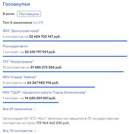 При таких госконтрактах "БТС-Мост" не вылезает из долгов. Фото: Rusprofile.ru