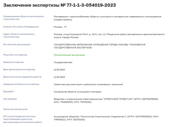 В едином госреестре заключений проектных решений 11 сентября 2023 года появилось сообщение, что положительное заключение госэкспертизы получила корректировка проекта реставрации с приспособлением объекта культурного наследия для современного использования, расположенного на улице Кузнецкий Мост, д. 12/3, стр. 1,2. По открытым источникам, по этому адресу расположен Пассаж К.С.Попова - Джамгаровых, где была устроена первая московская ручная телефонная станция на 800 номеров.