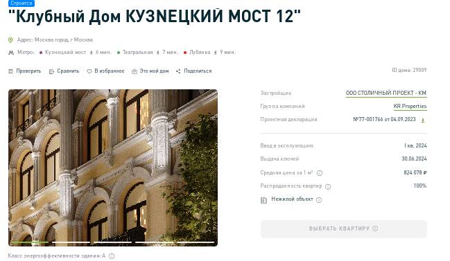 Судя по данным единой информсистемы жилищного строительства, на месте бывшего пассажа строят очередные элитные апартаменты для своих, обозвав всё это реставрацией. Проект под названием "Клубный Дом КУЗNЕЦКИЙ МОСТ 12" представляет собой элитные нежилые апартаменты, все помещения в которых уже распроданы. Цена "квадрата" составляла 824 078 рублей. Ввести объект в эксплуатацию планируют в первом квартале 2024 года, а передать ключи до конца июня того же года.