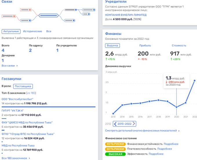 "Тувинская горнорудная компания", помимо того, что являлась и является поставщиком госконтрактов (в целом - 313 контрактов на более чем 1,5 млрд рублей), выступает стороной соглашения с правительством региона на поставку угля по льготной цене. В 2022 году он отгружался для населения по цене 2 220 рублей 10 копеек.