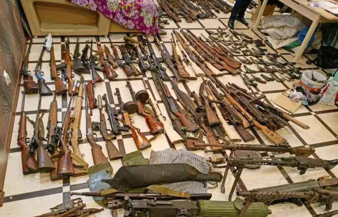Оперативники приехали незамедлительно и осмотрели подвал. Там их ждал большой сюрприз. Полицейские обнаружили пистолет Макарова, пистолет Стечкина, калаш АК-74М, два револьвера, ружьё, два самодельных пистолета, станковый пулемёт и три пистолета-пулемёта разных моделей, включая Uzi.