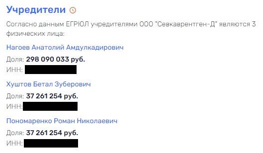 Кажется, именно со структурами из КБР "Севкаврентген-Д" договориться проще всего. Ведь в составе владельцев, помимо Анатолия Нагоева и Бетала Хустова оказался Роман Пономаренко - бывший чиновник из команды экс-главы КБР, а ныне влиятельного сенатора Арсена Канокова.
