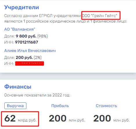 Четвертый акционер, ООО «Валиансия» до июля 2022 г. принадлежало Анастасии Усачевой, новый учредитель — неизвестен. У компании есть «дочка» ООО «Грейн Гейтс», занимающееся оптовой торговлей зерном. В 2022 г. выручка этой компании, созданной в июне того же года, составила 62 млрд руб., прибыль — 200 млн руб. За полгода компания получила потрясающий результат. Или её просто накачали деньгами?