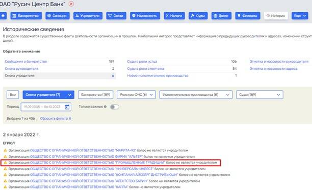Связь между банком и брокером прослеживается не только в этом. По данным "Коммерсанта", генеральный директор "Универсаль-Инвеста" Юрий Фирдман на 2011 год был владельцем 2,75% акций "Русич Центр Банка" и также являлся членом совета его директоров. По тем же данным, на тот момент совладелец банка Татьяна Швачка (владевшая 4,99% акций) также являлась совладельцем "Универсаль-Инвеста" (1,05%).