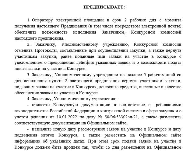 Жалобу признали обоснованной, было выдано предписание отменить итоги конкурса и назначить новый.