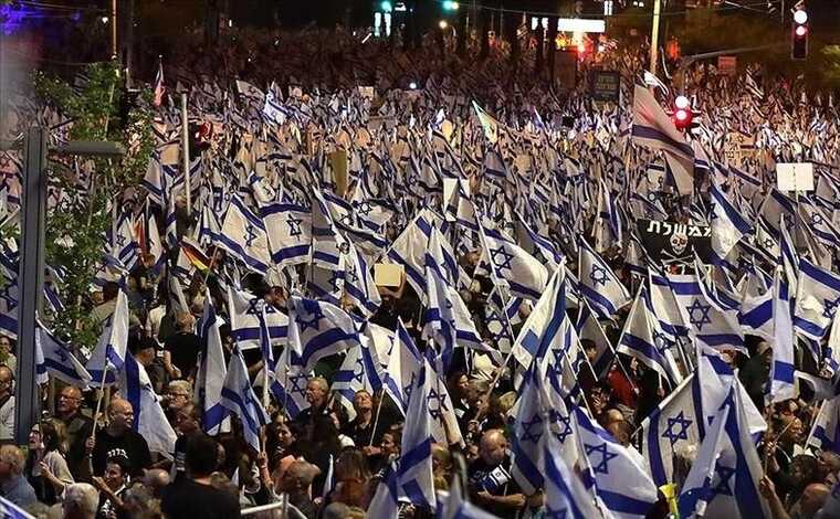 Собравшиеся призывают премьера Израиля подать в отставку.