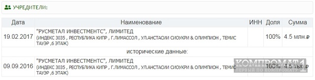 На самом деле, по данным базы «СПАРК-Интерфакс», 100% акций акционерного общества принадлежат компании «Русметал инвестментс, Лимитед» расположенной на Кипре: