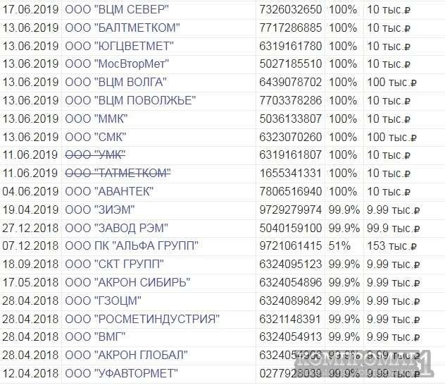 Обратите внимание на даты регистрации и, что более интересно, на размеры уставных капиталов большинства из них: 9 999 рублей и 10 000 рублей. Ничего бы особенного – все абсолютно законно. И, если рассматривать какое-либо ООО из этого списка в отдельности, то ничего и не насторожит.