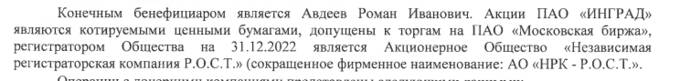 По информации ФНС, на конец 2022 года бенефициаром "Инграда" был г-н Авдеев. То есть налицо ещё одна связь Черкасова с Авдеевым.