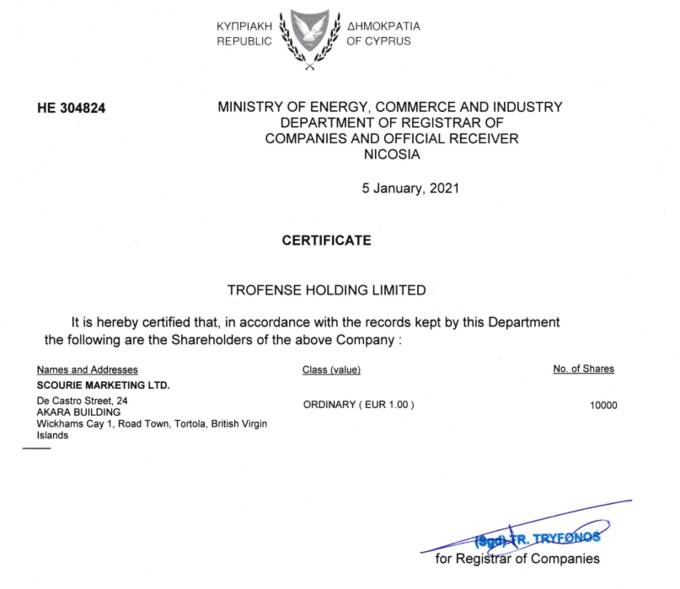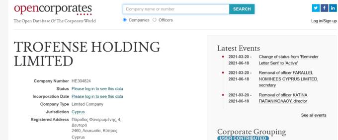 Так в открытых источниках одно время в качестве секретаря Trofense фигурировало PARALLEL NOMINEES CYPRUS LIMITED.