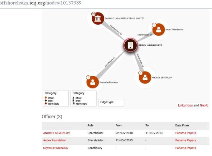 А именно с PARALLEL NOMINEES CYPRUS LIMITED (через офшор с Британских островов - ORIDEN HOLDINGS LTD) "Панамское досье" указало связь некоего Андрея Северилова (ANDREY SEVERILOV) и его семейного фонда Andex Foundation из Лихтенштейна, который фигурировал в деле Абызова.
