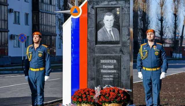 В церемонии открытия улицы имени Зиничева и стелы в День спасателя принял участие глава Чечни Рамзан Кадыров. В своем выступлении он заявил, что погибший министр является «наглядным примером настоящего спасателя, мужественного, решительного и самоотверженного патриота России».
