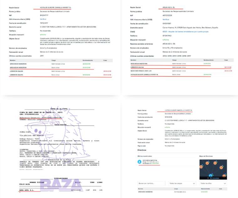 Выписки из коммерческого реестра о владельцах компаний Hotels Europe Daniella Invest SL, Agua Azul SL и Hotels Europe Marcello Invest SL