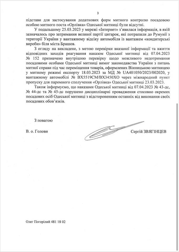 Сергей Звягинцев, исполняющий обязанности главы таможни, фактически подтвердил контрабанду сигарет, произведенных фабрикой Козловского, в Румынию под прикрытием кондитерских изделий "Рошен".