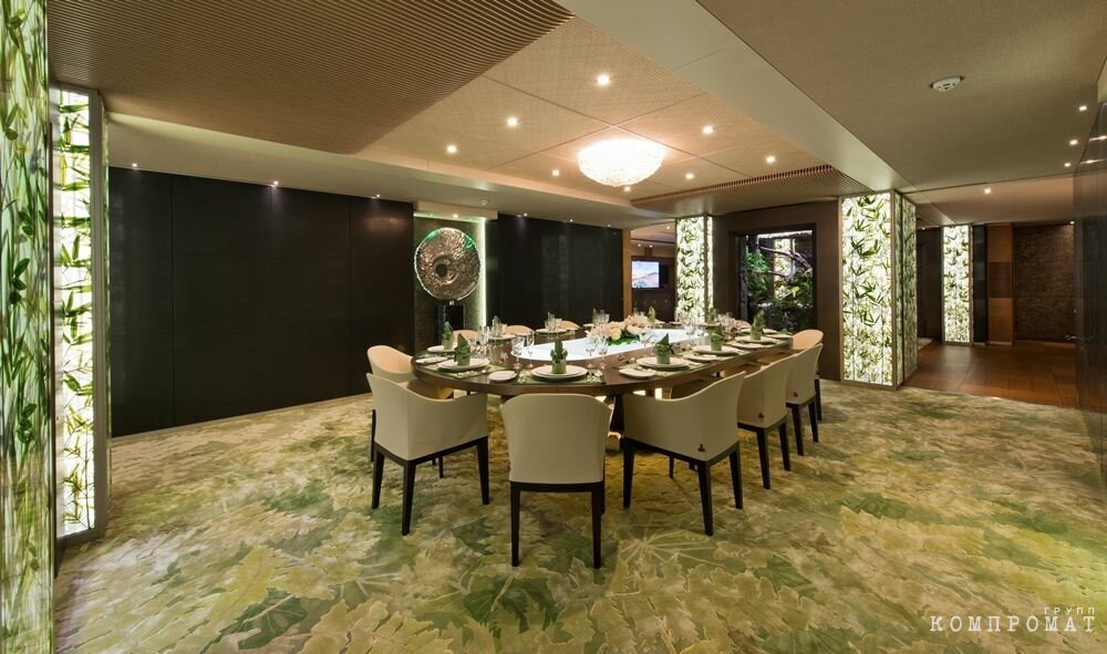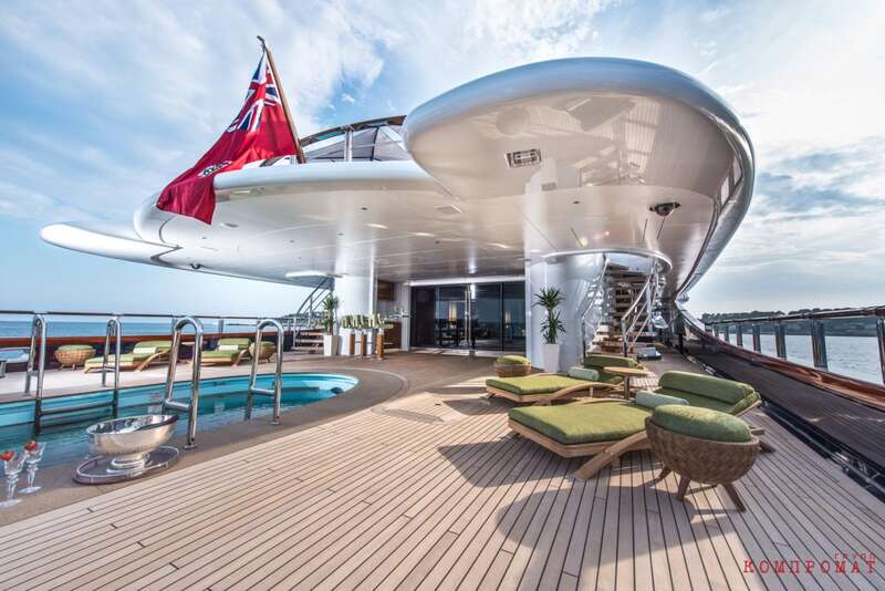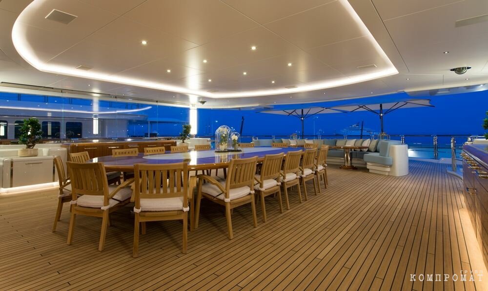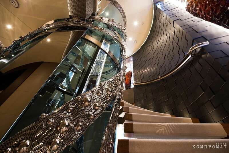 Владельцу «Норникеля» есть, где по-прежнему впадать в шести-палубную и почти 90-метровую нирвану: на яхте имеется и 7,5-метровый бассейн, и террариум, и серебристый гравированный лифт, спа-салон, фитнес-зал, 3D-кинотеатр, парковка для аквабайков, вертолетная площадка...