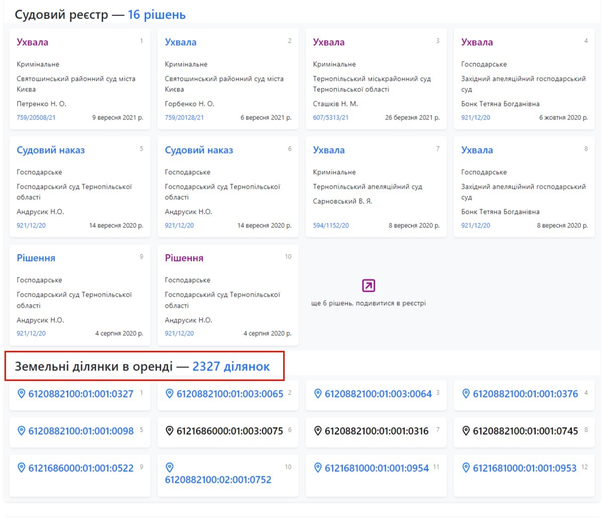 Лично Романе Яреме и ее родному брату Андрею Осадчук на правах собственности принадлежат около 130 земельных участков в Гуковской общине, которая находится на границе Хмельницкой и Тернопольской областей. Именно из тех краев, как мы упоминали, прорастают корни Андрея и Романы Ярем.