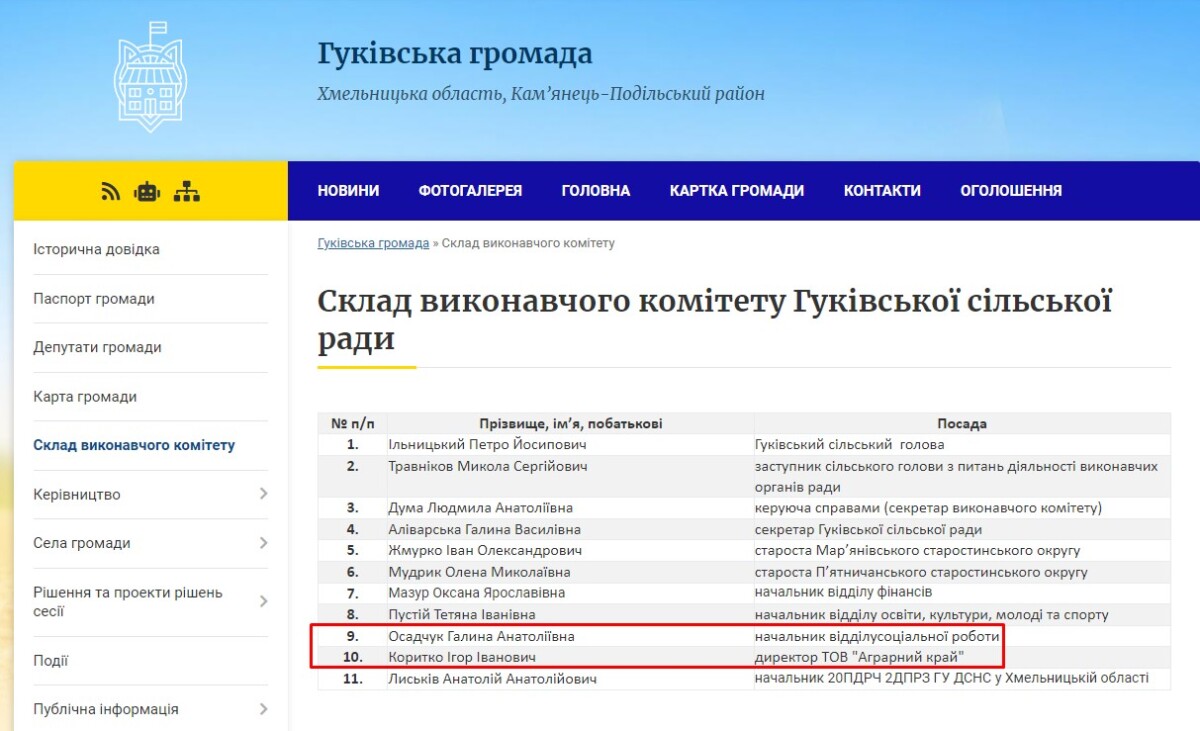 По странному совпадению, у члена исполнительного комитета Гуковской общины тоже есть фамилия Осадчук. Впрочем, женщина, председатель сельского совета села Жабинцы, отрицает родственные связи как с пани Романой, так и с ее братом Андреем Осадчуком.