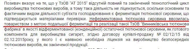 Итак, руководитель ликвидированной ООО «АТ 2015» Андрея Яремы в суде ссылался на сотрудничество с «Винниковской фабрикой» львовского табачного магната, за которым тянется стойкий контрабандный «шлейф».