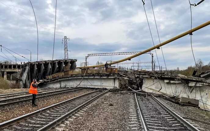 Один из самых крупных мостов Вязьмы рухнул около получаса назад.