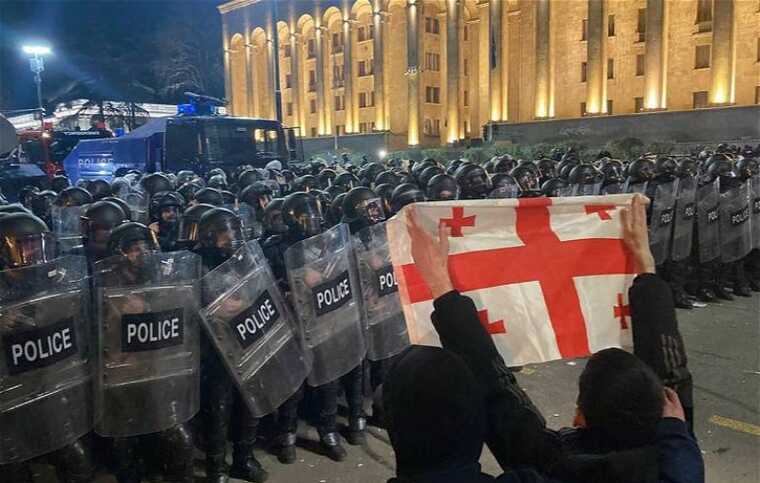 В Грузии продолжаются акции протеста против закона об иноагентах, сегодня вечером на улицы города вновь вышли несколько тысяч человек. Активисты с флагами ЕС и Грузии окружили здание парламента и перекрыли проспект Руставели, часть митингующих пыталась прорвать полицейские кордоны и подняться на сцену, установленную для завтрашнего митинга правящей партии. В районе очень много полиции и подтягивается всë больше спецназа, также замечены водомëты и другая спецтехника. О задержанных пока не сообщалось.