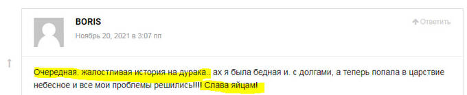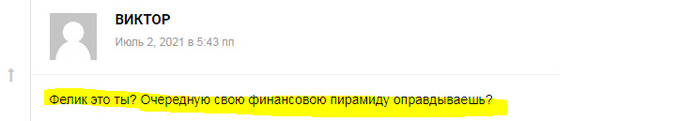 Отзывы о финансовых пирамидах Фелика и его подельников весьма содержательны и красочны. Несмотря на огромное количество заказных комментариев, написанных бездарно и однотипно, реальных отзывов значительно больше. Причем весьма наглядно это видно именно в комментариях к заказным отзывам ботов, прославляющих финансовые пирамиды.
