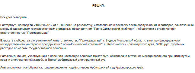 Еще в 2016 году проходили судебные заседания по иску того самого ФГУП "Горно-Химический комбинат", где раньше трудился Черкасенко, к его же ООО "Промсредмаш". ФГУП пытался добиться расторжения контракта с ООО на 35 млн рублей.