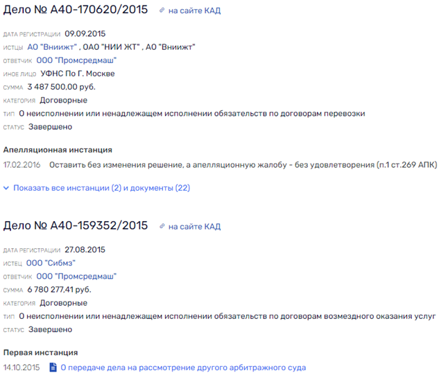 Таких дел против ООО "Атомпромресурсы" и ООО "Промсредмаш" десятки. Фото: Rusprofile.ru