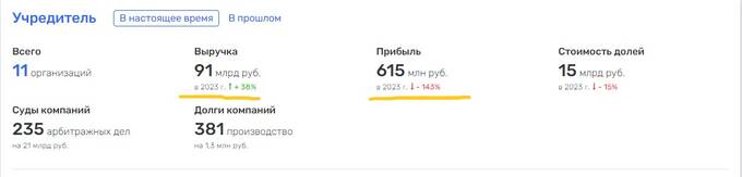 В этом разрезе интересно посмотреть на финансовые результаты бизнес-империи Амбарцумяна, в которую входят общим итогом 11 предприятий. По данным ресурса «Руспрофайл», выручка структур Амбарцумяна в прошлом году составила 91 миллиард рублей, а прибыль – 615 миллионов. Но интереснее не это, а динамика: выручка возросла на 38%, в то время как прибыль упала аж на 143%.