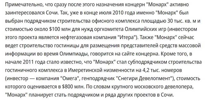 Казалось бы, что с отставкой Лужкова дела Амбарцумяна пойдут на спад. Но – нет. Все вышло совсем наоборот. Во-первых, отец его делового партнера Андрея Моносова после ухода из правительства Москвы пошел на повышение – стал заместителем главы «Олимпстроя». «МонАрх» сразу же занялся застройкой Сочи.