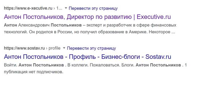 К тому же на Постольникова ополчился кто-то из «окученных» ним на ниве «финтеха» людей, решивших раскопать подноготную «гуру». И стал активно сливать биографию «выдающегося экономиста» в Сеть. Если с интересом правоохранителей Постольников не может особо ничего сделать – там надежда только на адвокатов, то с выдачей ГУГЛа он решил бороться. Потому и имеем мы такие поразительные результаты выдачи на запрос «Антон Постольников».