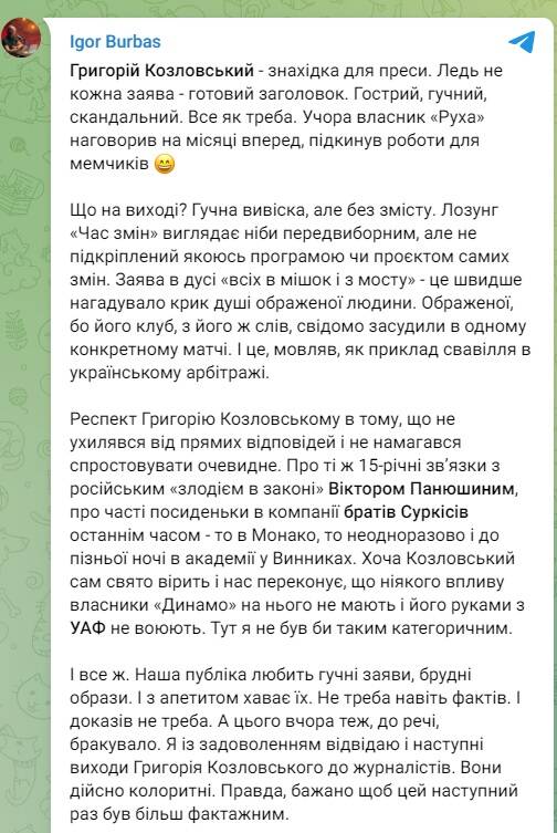 Подозрения эти подтверждаются тем, что 24 октября 2022 года Григорий Козловский на специально организованной в городе Винники пресс-конференции рассказал о своем участии в судьбе 64-летнего уроженце Татарстана, гражданина РФ Виктора Панюшина, который известен в статусе так называемого «вора в законе» по прозвищу «Пан» или «Витя Пан».