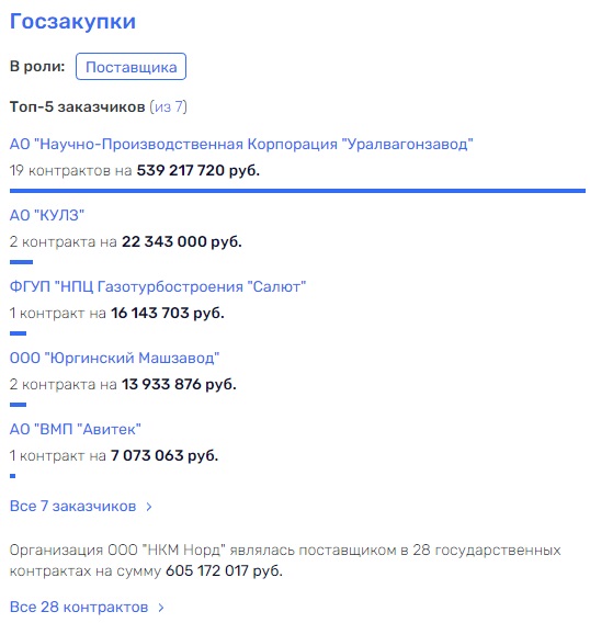 ООО "НМК Норд" является одним из крупных поставщиков оборонной продукции через "Ростех" имеющем миллиардные госконтракты.