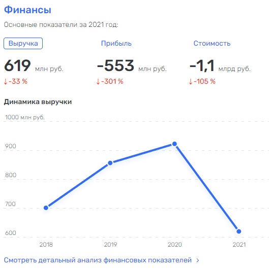 Сейчас структура находится в стадии банкротства. Складывается ощущение, что из ГОКа буквально выкачали прибыль и активы. По итогам 2021 года при выручке в 619 млн рублей она показала убыток в 553 млн рублей. Стоимость активов - отрицательная, минус 1,1 млрд рублей. За год она сократилась на 101%.