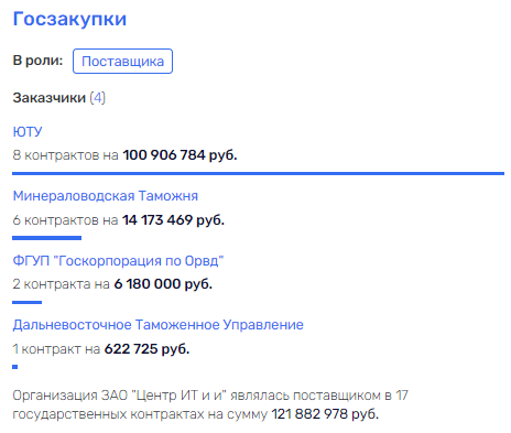 Надо сказать, что у её гендиректора под руководством есть ещё компания "Центр ИТ и и", которая тоже "купается" в госконтрактах от таможни.