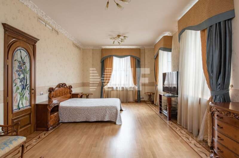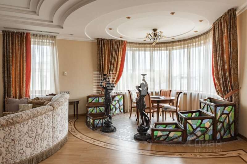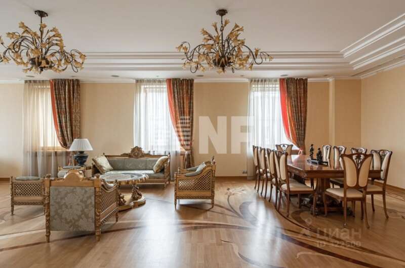 Объявление висит на ЦИАНе с марта 2022 года. Указано, что в квартире есть гостиная-столовая, кухня с хозяйственной комнатой и кладовой, кабинет с сейфовой комнатой, спальня с двумя санузлами и двумя гардеробными, две гостевые спальни, две детские спальни, кладовая, две ванные, прихожая с гардеробной и санузлом и постирочная.