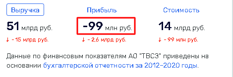 Основной актив ОВК – АО «Тихвинский вагоностроительный завод» при выручке в 2020 г. 51 млрд руб. получил убыток 99 млн руб. , в 2018 г. она была 2,9 млрд руб. при выручке 58 млрд руб. Можно поздравить завод с тем, что он сумел сократить убыток за тяжелые последние два года, прожитые под контролем банка «ФК Открытие»?